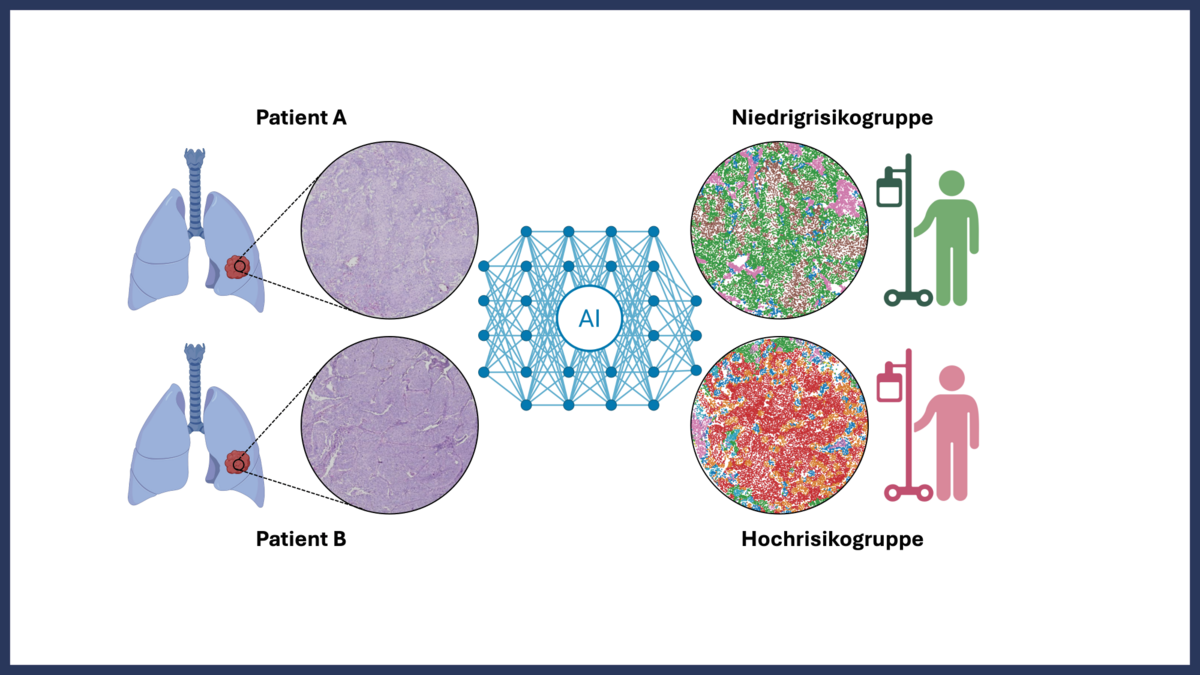 In this study, researchers developed a new approach to better estimate the likelihood of recurrence in lung cancer. Until now, such predictions have been based mainly on factors such as tumor size or lymph node involvement, which are often insufficient, especially in early disease stages. This so-called “staging” does not capture the detailed interactions between the tumor and the various cell types of the immune and connective tissue in its surrounding environment. In their work, the researchers combined histological data, multiplex immunofluorescence imaging, and multimodal machine learning to analyze the complex cellular structures and interactions in the tumor microenvironment of 1,168 patients from two major German cancer centers.
