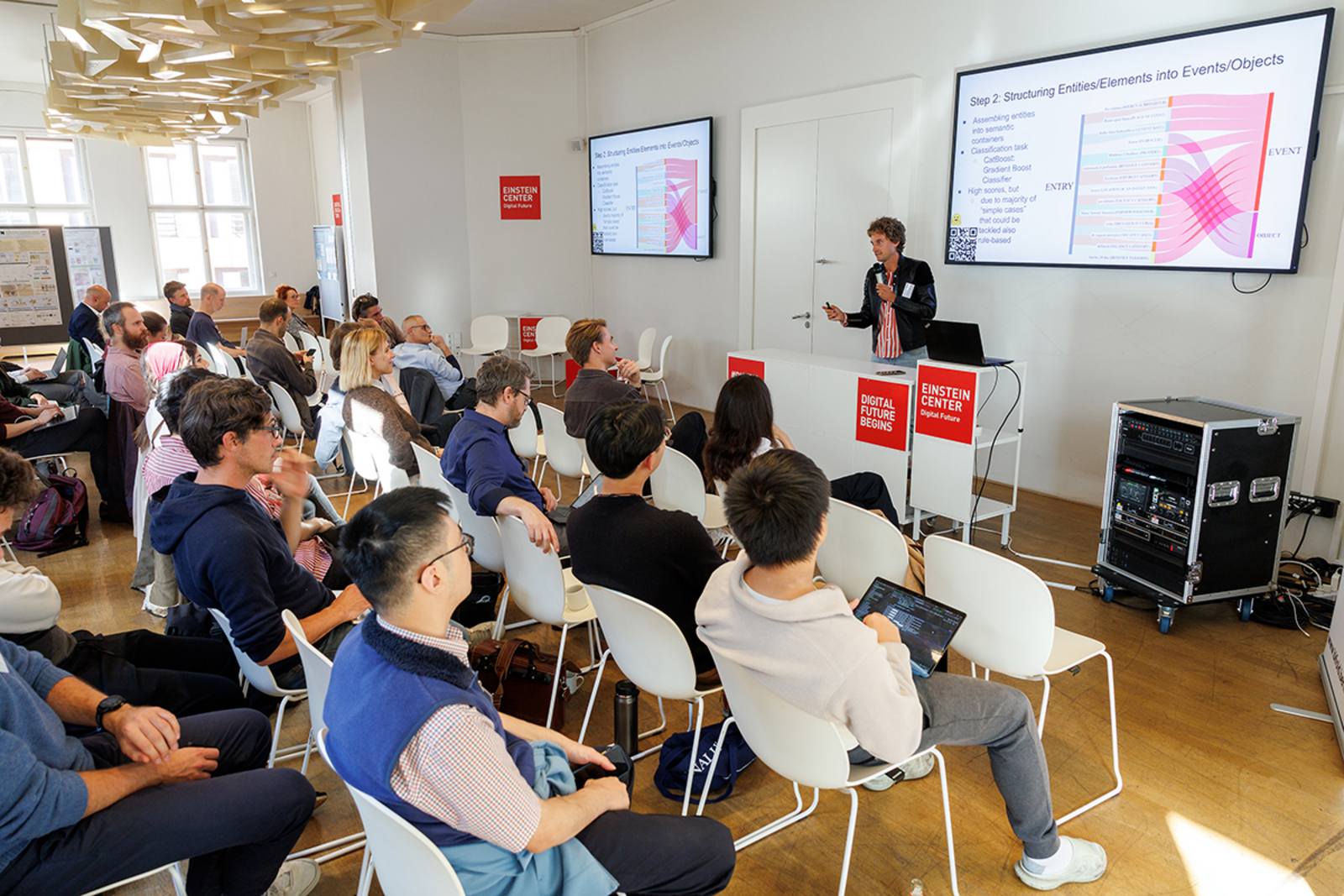 The team also broadened the conversation beyond the academic core: in an interview, Matteo Valleriani and Oliver Eberle discussed the ambition to rethink AI for the Humanities. In addition, the workshop was embedded in a small program of public events. Christoph Sander presented his research on “EFFIZIENT ABER KORRUPT? Verwaltung im 17. und 21. Jahrhundert, untersucht mit KI,” followed by an open discussion. The program concluded with a scientific colloquium featuring Ingo Scholtes.