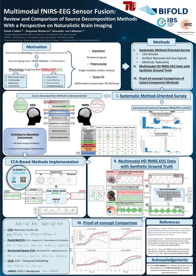A systematic review and proof-of-concept comparison of data-driven source decomposition methods for naturalistic brain imaging. The session highlights promising strategies for combining fNIRS and EEG data, offering new perspectives for multimodal fusion in neuroimaging research.
